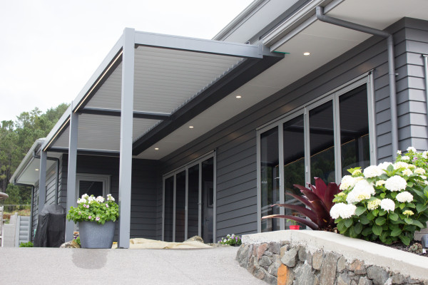 The two bay louvre roof is the ultimate in custom-made products and is designed and made in New Zealand, and available powder coated to the finish of choice from the extensive Dulux® range. The louvre blades were finished in Dulux Appliance White, and the support beams and leg structures in Black Ace from the Dulux Charisma range. Not only do these match the home's fittings perfectly, but the light colour on the louvre blades also helps to keep the area light and bright and increases the sense of space.